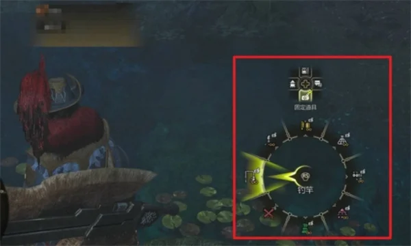 2、随后我们打开物品栏的道具界面,选择左侧的钓竿,在任务地点垂钓。
