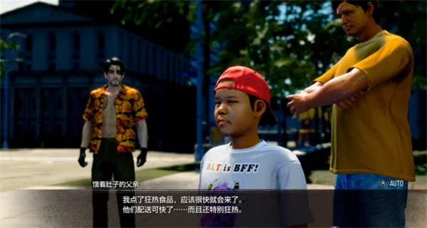 任务触发:落日公园偶遇点“狂热食品”外卖的父子俩。