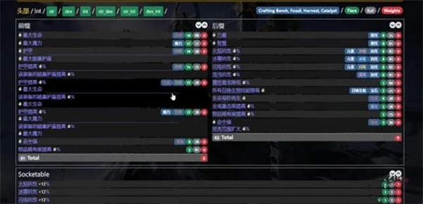 1、大法师防具需要的属性其实还是比较简单的,分别是能量护盾和最大魔力,这里以头部为例。