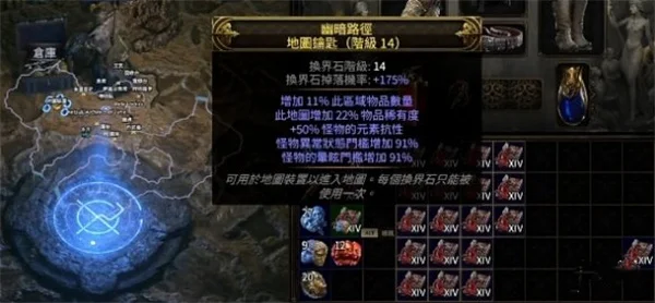 使用富豪石则会随机增加一条前缀或后缀,这就建议玩家BD输出不够的时候去挑战具有前缀的地图,具有后缀的地图可拿去卖,或者使用瓦尔宝珠进行再次加工。