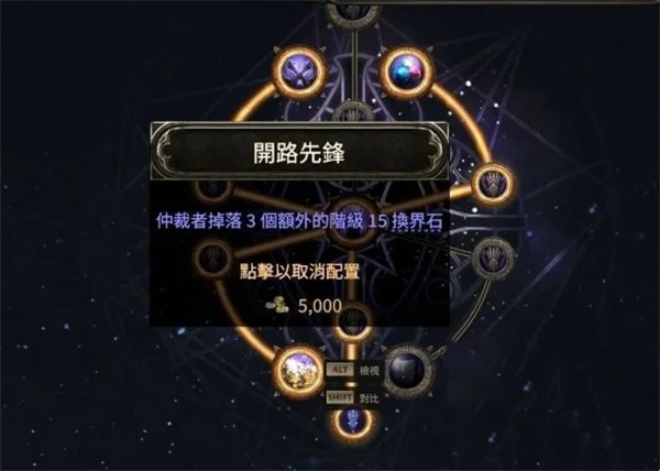 4、首先玩家要点出天赋中的开路先锋“仲裁者掉落额外三个15换界石”