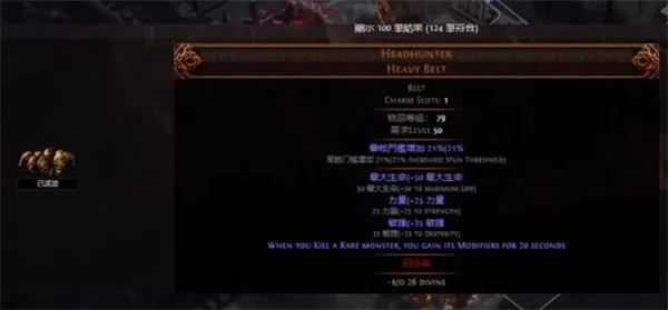 3、比如猎手就只有用重革腰带才能赌出,其他类型的腰带是无法赌出猎首。