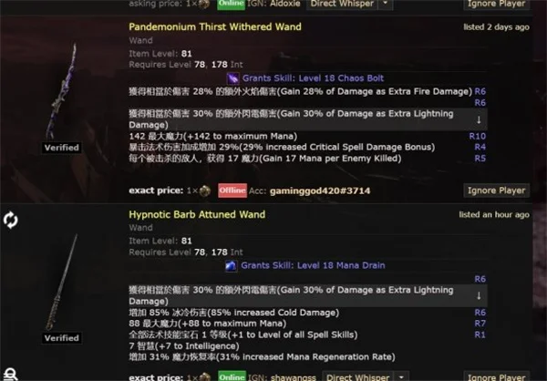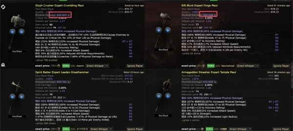 额外伤害:增加特定类型的伤害(如闪电、冰冷、火焰等)的前缀,尤其是高百分比的伤害增幅,通常会显著提高武器的价值。