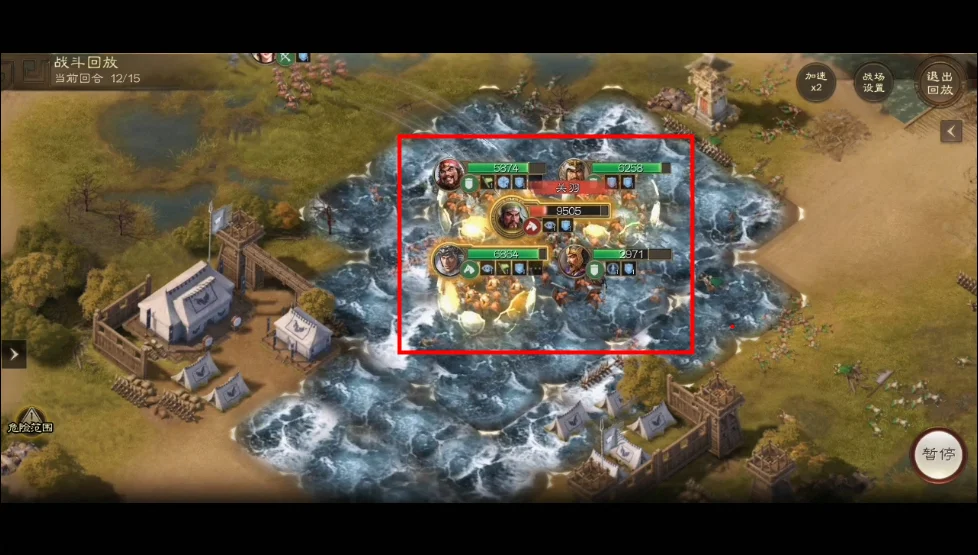 3)消灭完关羽的队友后,要注意群殴关羽时的站位,以免被关羽打出群伤导致输出武将阵亡,从而无法在15回合内杀死关羽,功亏一篑。