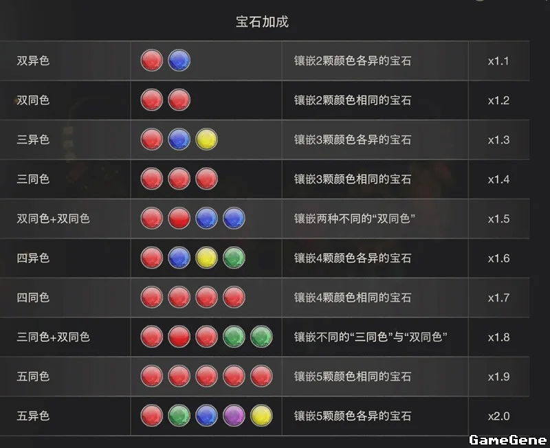 游戏中有很多可以镶嵌入宝石的珍贵品,通过六种宝石的组合,可以提升宝物的贩卖价值,以下是具体的倍率图。