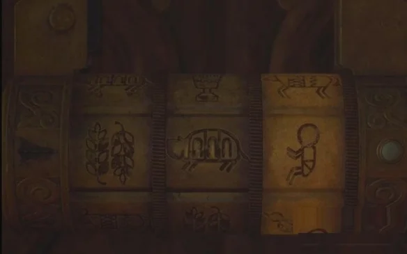 5. 旋转水晶球,使水晶球里的颗粒形成的图案与门上的符号重合(如下图),门就开了。