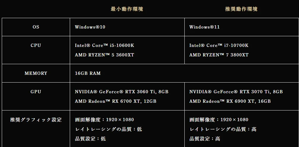想要开启光追流畅游玩的玩家可以参考上图配置要求,希望对大家有所帮助。