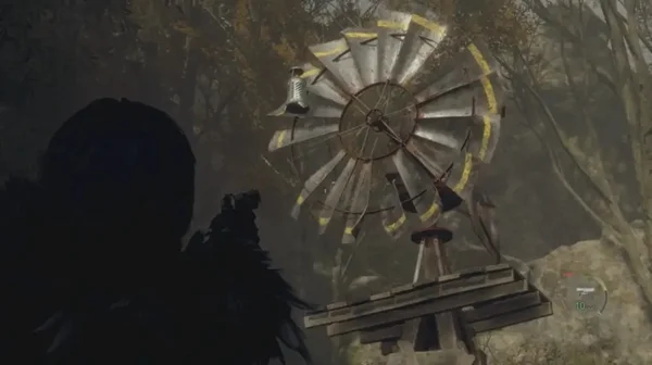 第五个在进入大风车二楼,从左边小门出来后跳下来回头就能看到
