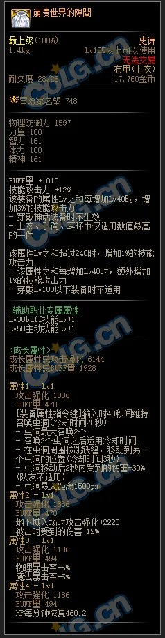 dnf崩溃世界的隙间可以在大魔法师的次元回廊中获取,具体属性可以见上图。