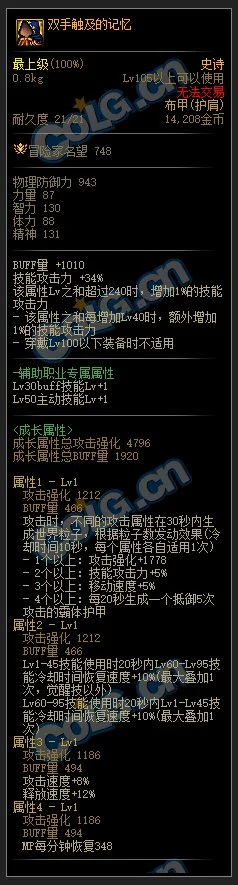 dnf双手触及的记忆属性效果可以见上图,该装备可以在新版本中的大魔法师的次元回廊中获得