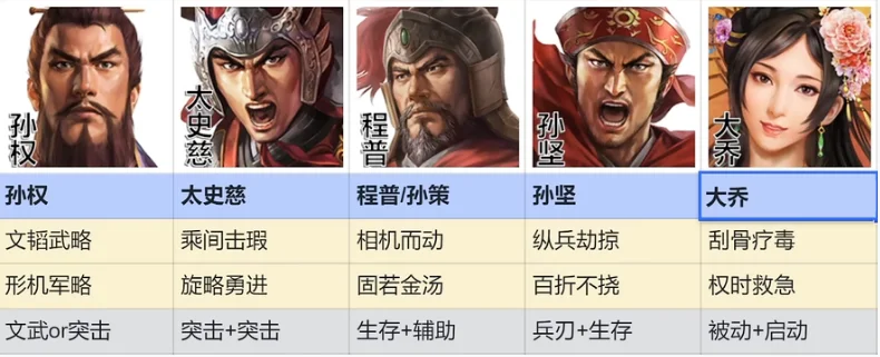 孙权也非常适配这套阵容,尤其适配太史慈,因为太史慈能连击的关系被动buff叠的很快,buff叠上来之后自身也可以带一些文武体系的战法当一个副输出。