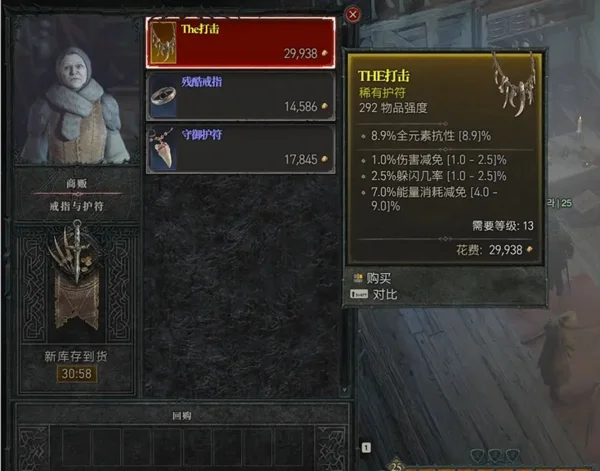 首饰匠旁边就是首饰商人,它会出售戒指与护符,15级之后可以在这里刷到黄色戒指与护符。