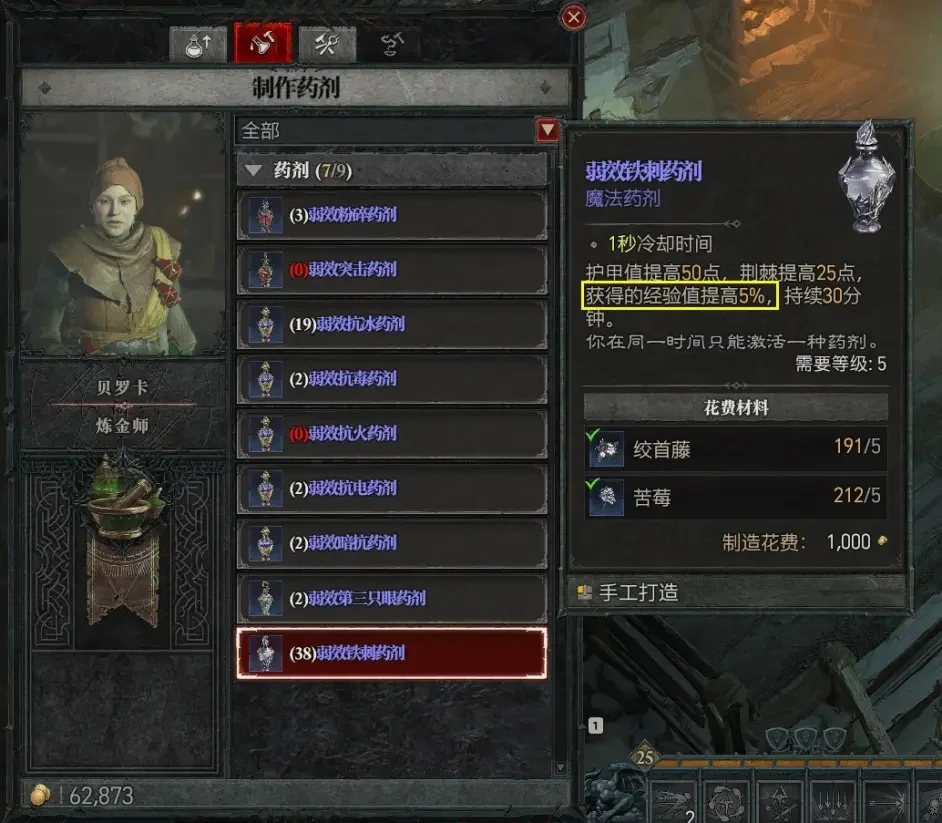 药剂提供5%的额外经验,如果你觉得自己升级太慢可以做做图中的药剂一直喝。