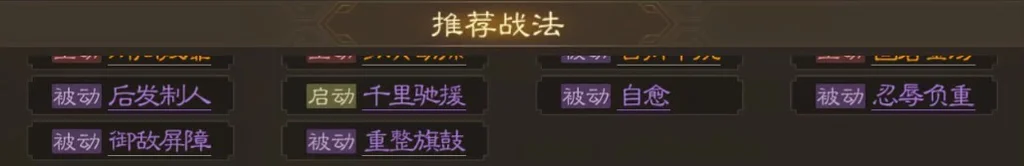 后发制人、千里驰援、自愈、忍辱负重、御敌屏障、重整旗鼓