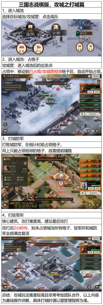 攻城基操步骤:进入城池→在城池里占格子→打城防军→打驻军所