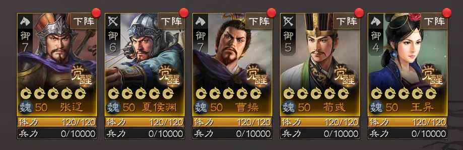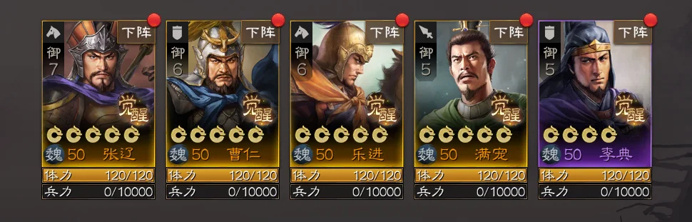 阵容一:张辽+曹仁+满宠+乐进+李典