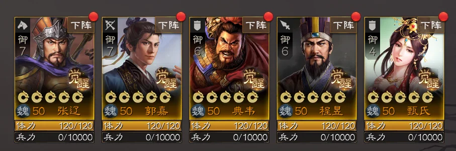 阵容二:张辽+郭嘉+典韦+甄氏+程昱