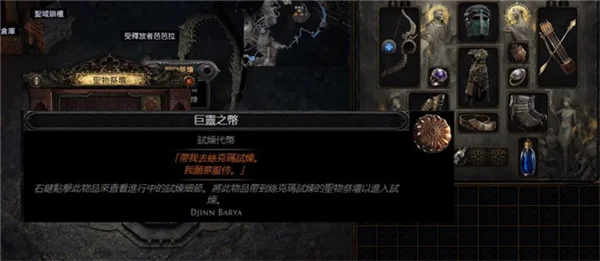 幸运的是,丝克玛的试炼拥有一些独特的机制,帮助你通关。 第一个显著的新增机制是“圣物”的引入,类似于《暗黑破坏神2》中的“符文”,但拥有独立的背包空间。圣物提供强大的加成,增强你下一次的试炼。你第一次进入时将会得到一个初始圣物,可以减少荣誉损失。在开始试炼之前,记得将它装备到圣物祭坛中。