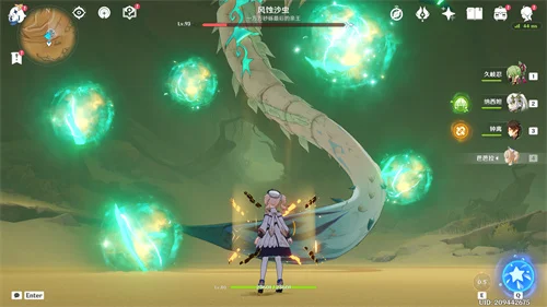 当风蚀沙虫升空时,周围会出现许多风球,这些大家需要使用:火、雷、水、冰四种元素中的任意一种,打破两风球即可让风蚀沙虫瘫痪10秒。