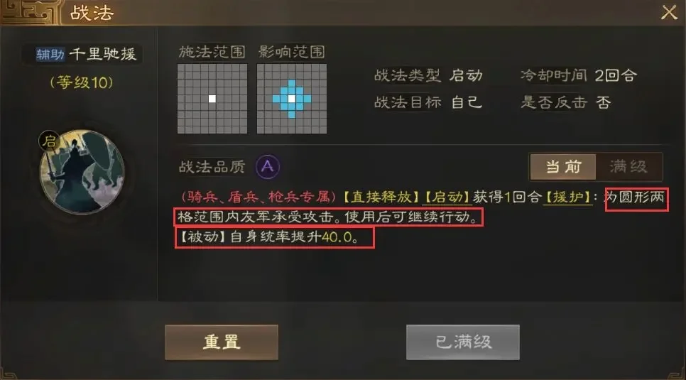 朱恒作为统率值较高的盾兵武将,本身就拥有着不俗的承伤能力,自带战法的被动效果,还能提供额外的统率值,承伤能力更进一步。主动释放还能为周围的友军提供援护效果,替他们承受攻击,很好地回馈队友。