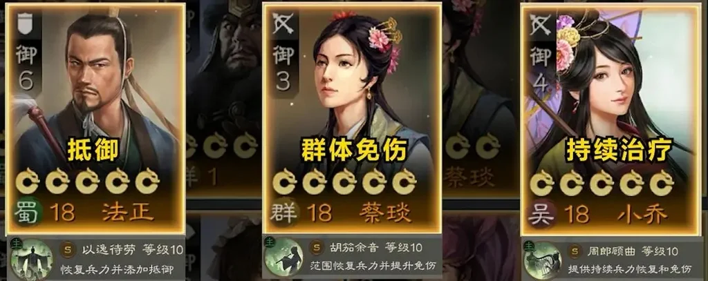而预抽卡卡池内的法正、蔡琰、小乔,作为奶妈也同样有着不俗的实力,可以在不同的战局状况中发挥独到的功能。不过单论治疗能力而言,还是华佗远胜于下面这三位。