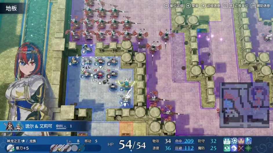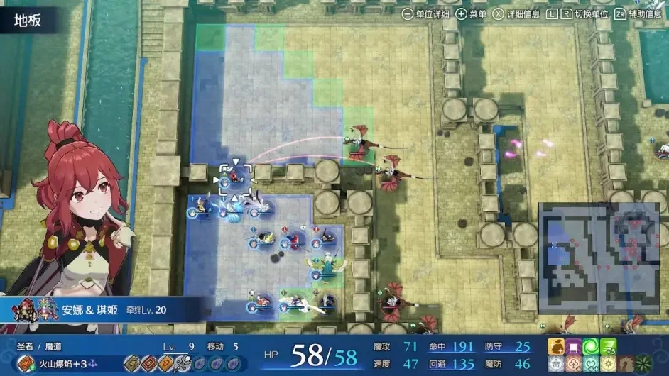 安娜自动收费循环:首先路易哥后撤到下图位置;然后安娜桑往门口一站,打一个离自己2格的飞龙,或者直接待命也可以;贝珥往右边一格,开龙脉护(我的安娜回避135,如果开龙脉雾,飞龙肯定miss,就不打了,所以还是开龙脉护);蜜斯提拉站到安娜桑后面,跟露露结合开盾。然后直接结束回合就能观看安娜桑的自动收钱系统啦!