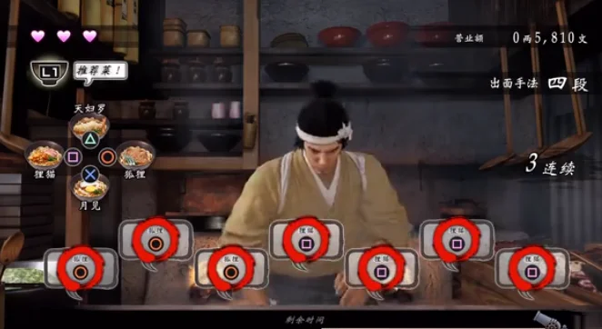 1.游戏玩的时候不用看面的名字,直接背板按键符号,在遇到比较难的谱面时,可以使用L1强制变成一种渡过,一颗心只有一次L1的使用机会,3颗心都用完后游戏结束。