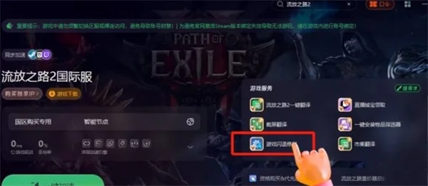 找到流放之路2国际服加载页面,右侧的游戏服务一栏能看见游戏闪退修复,直接使用即可。