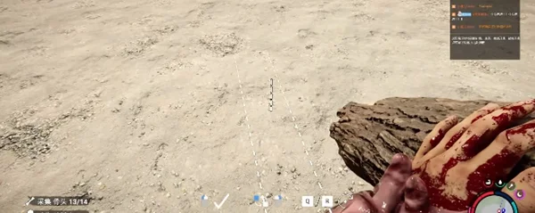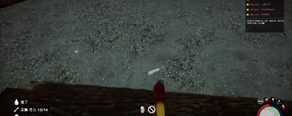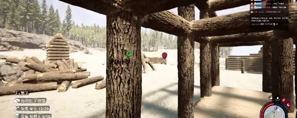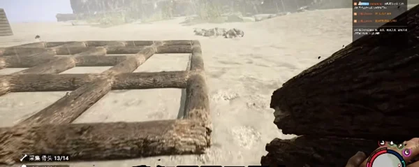 2、造好之后,玩家需要使用原木对着这个正方行的框,提示有白色虚线点鼠标左键建造地板;