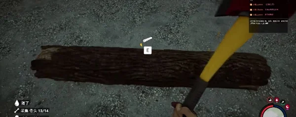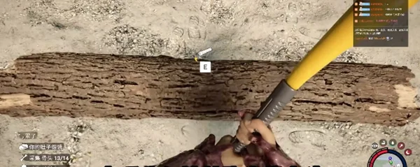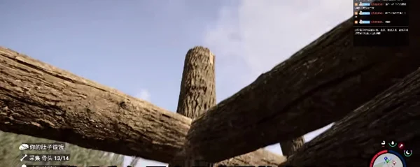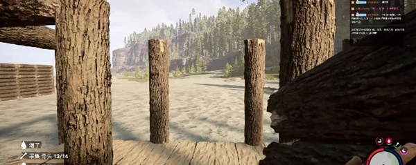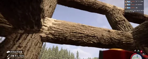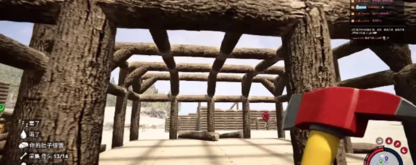 6、之后我们接着砍半截木头,找到屋子的四个角两边都摆上承重柱;