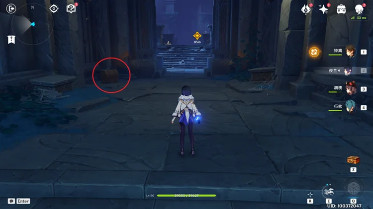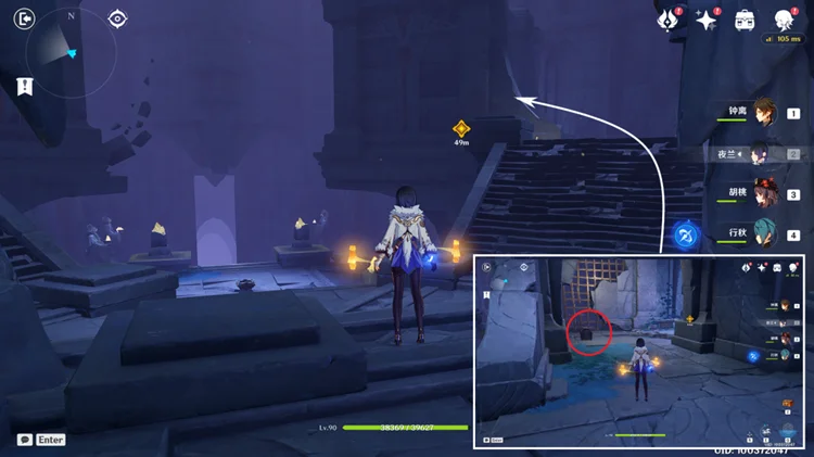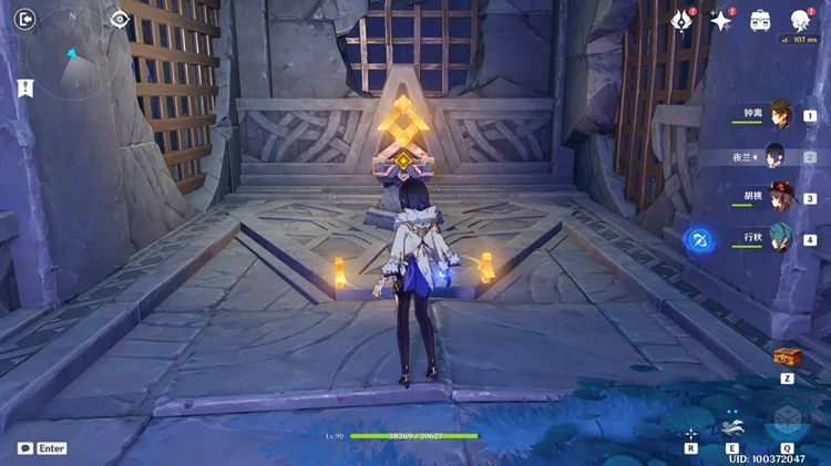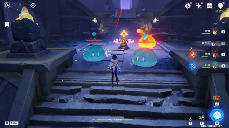 1,首先我们进入遗迹,穿过正在朝拜的丘丘人,来到前面的房间内