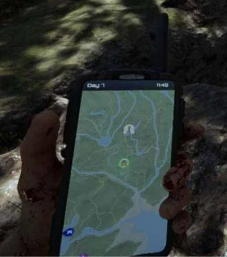 1、电锯的位置如下图所示,按照GPS的标注找到地上有一个洞窟,进入后找到地下补给站。