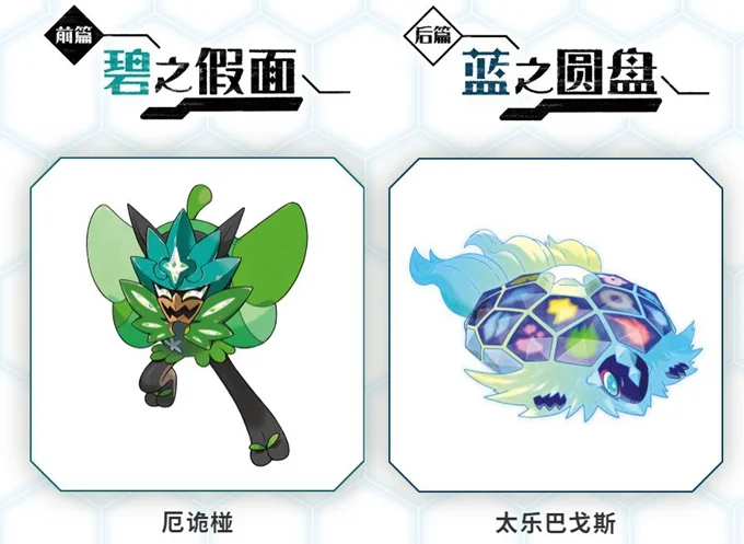 在此介绍能在《零之秘宝》遇见的传说的宝可梦们。在“前篇:碧之假面”会与戴着恐怖面具的“厄诡椪”相遇。而在“后篇:蓝之圆盘”则会有散发闪耀气场的“太乐巴戈斯”登场。