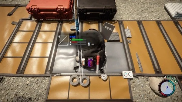 轻按 i 键打开背包,然后将右上角背包放到合成栏,可以在这里快速装备需要的物资,将他放到背包上就行,不想要的可以卸下来。