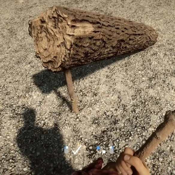 第1种方式:将原木横着放在地上,用树棍将原木抵起来,再用身体撞倒,就会出现两个原木了。