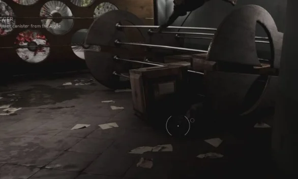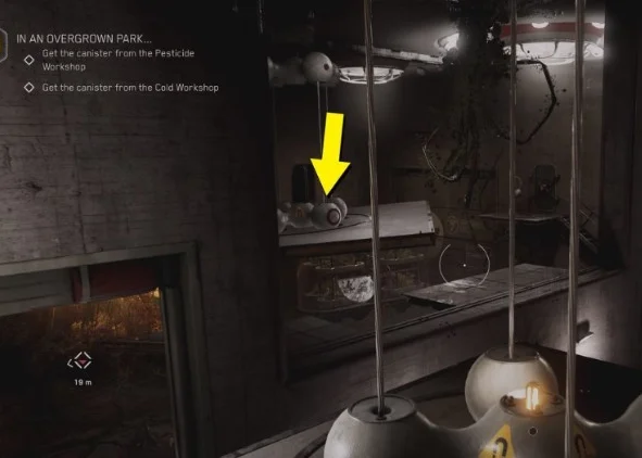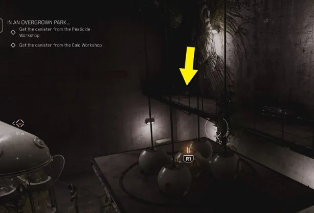找到黄色罐子(主线目标),来到上方平台,用手套将平台向右移动,跳到对面去,在走道角落里找到。