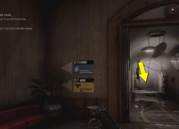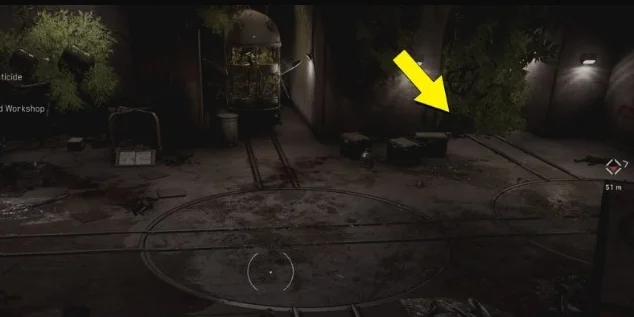 农药车间底层,角落里有个被植物覆盖的拱门,在里面找到。