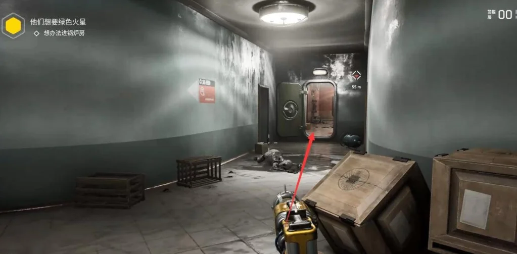 任务“他们想要绿色火星”,从这个门来到高温车间,安全屋箱子里拿到【寒冰插装模块蓝图】。