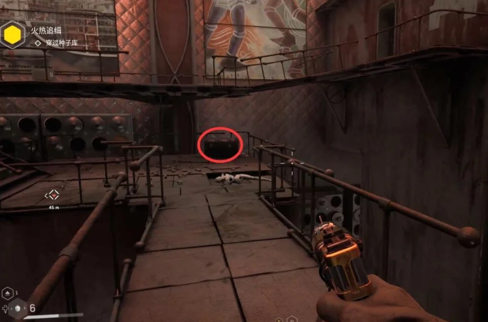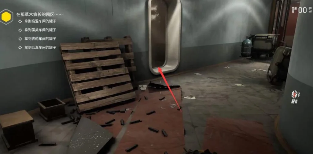 任务“火热追缉”,穿过种子库追赶彼得罗夫的路上,穿过安全屋,走上楼梯之前,箱子里拿到【火焰插装模块蓝图】。