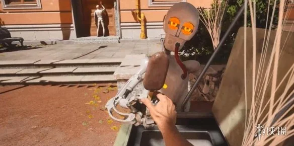 查看纪念碑后,来到实验室与门口的机器人对话。