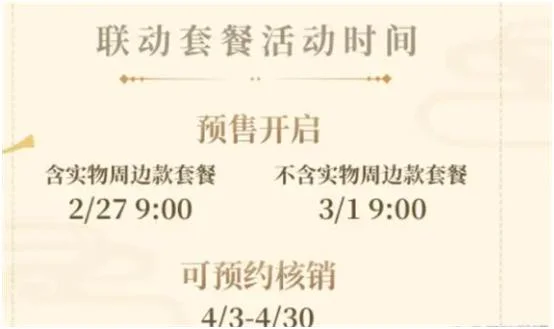 2、联动套餐有含实物周边款套餐以及不含实物周边款套餐。