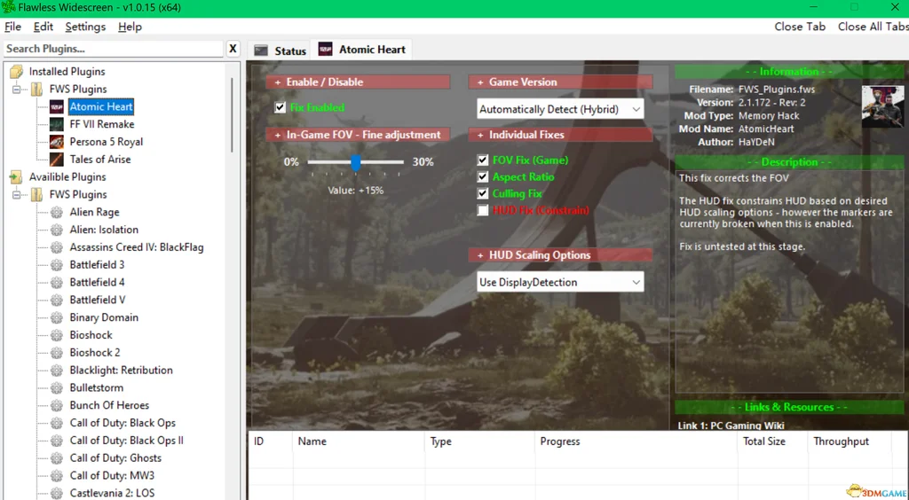 4.在左侧栏选择双击Atomic Heart 然后弹出右边画面勾选Fix Enabled即可