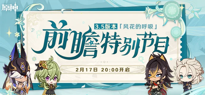 《原神》3.5版本「风花的呼吸」前瞻特别节目将于2月17日(本周五)晚20:00正式开启。
