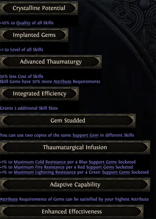 晶化潜能-植入的宝石-高级秘术-综合效率-镶嵌宝石-秘术注入-适应性能力-效果增强