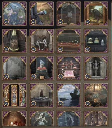 p1从左到右:巴拿巴斯的挂毯,天文望远镜,部分变形,巴鲁费奥的肖像。 残破的扫帚,扁平护甲,妖精制品,三姐妹钟。 焦痕,格林包德维福特,青蛙合唱团,挥舞骑士。 魔法史窗户,木猫,黑湖,地下港。