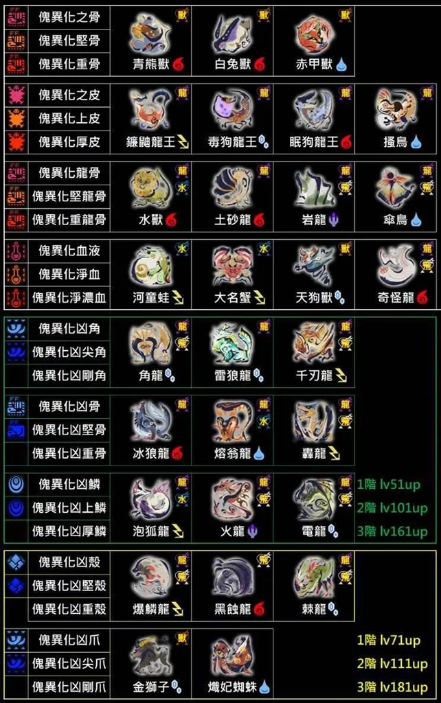 怪物猎人曙光5.0全怪异化素材对应查询表。不少玩家可能还不太清楚5.0版本中的怪异化素材都如何获取到,下面带来具体的介绍,供各位玩家们参考。
