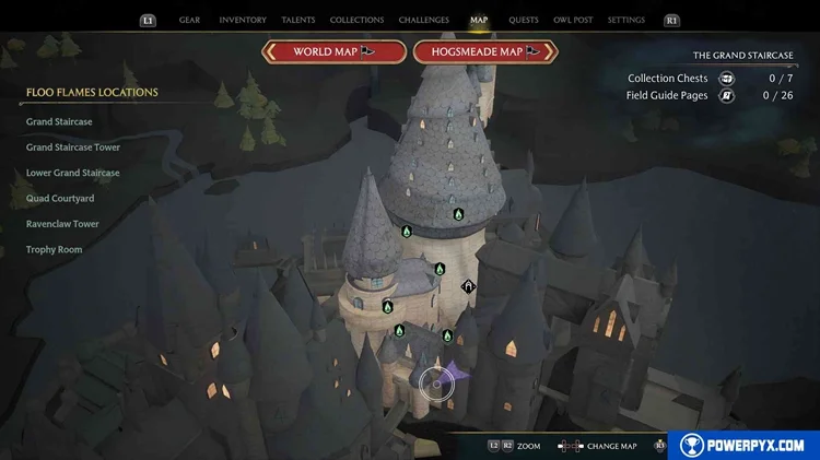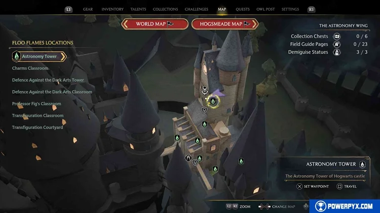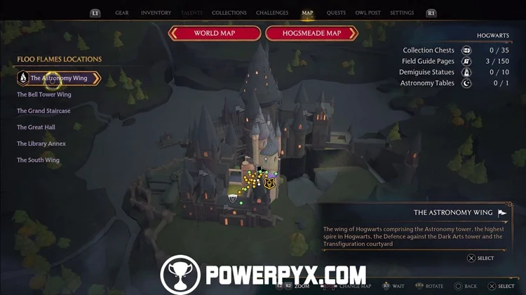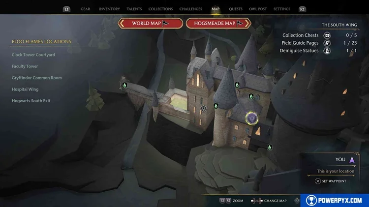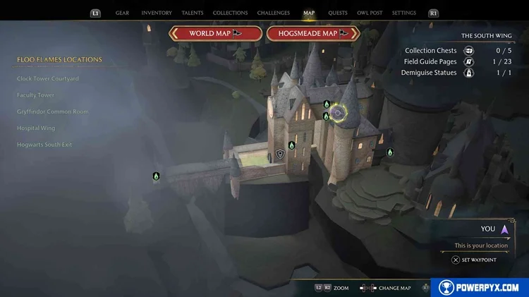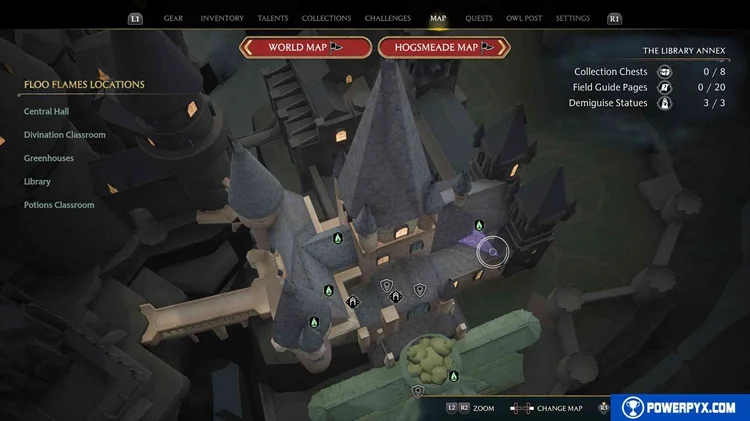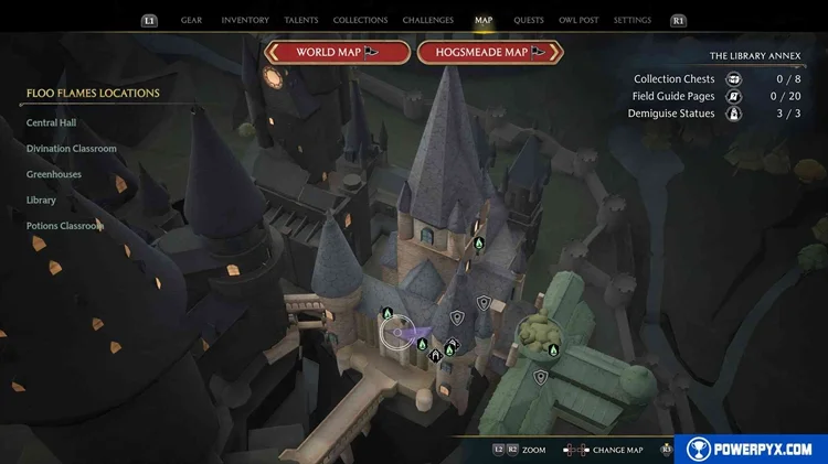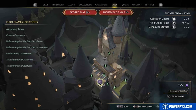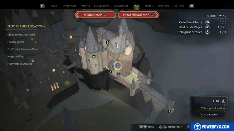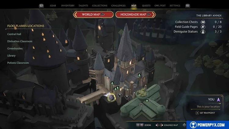 ”。从你生成的地方,稍微向左转,施放 Revelio 以标记飞行钥匙并在书架之间检查。找到它后,回到快速旅行点。当面对快速旅行点时,向右走找到机柜(可以再次施放Revelio)。