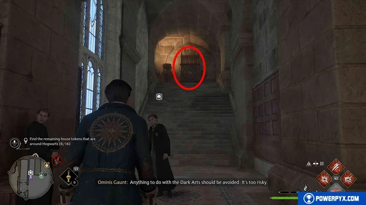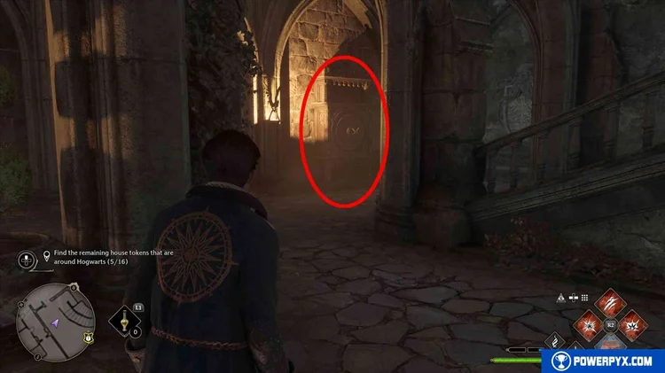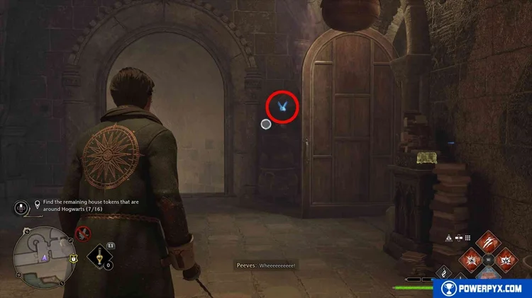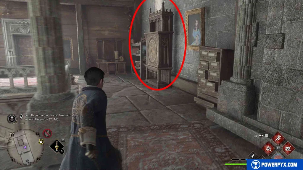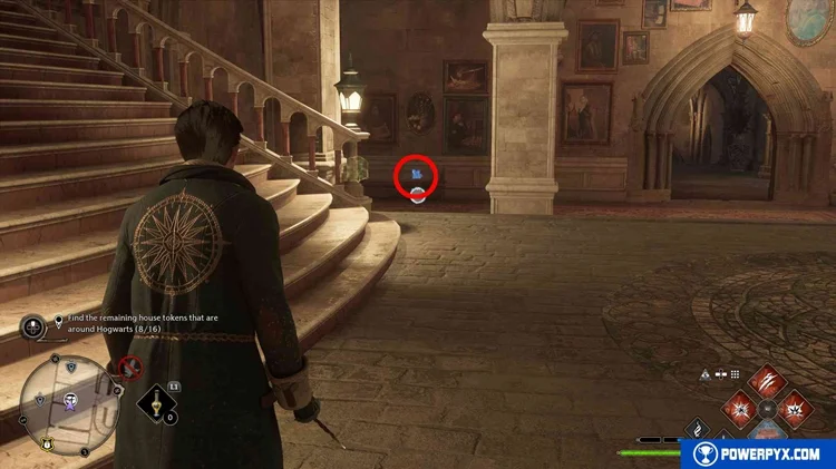 ”。从你生成的地方,穿过你面前的门。然后向左转以查看飞行键(像往常一样可以施放 Revelio 以将其标记为蓝色)。现在走下楼梯,一直走到尽头,找到楼梯尽头的柜子。