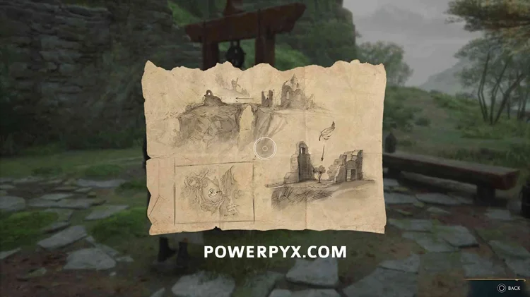 藏宝图解决方案从费尔德罗夫特地区的“Irondale”快速旅行点开始。从那里使用飞行扫帚直接向南飞越峡谷到达废墟。