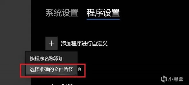 3. 然后点击“添加程序自定义“--》点击”选择准确的文件路径